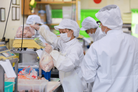 お客様の注文に応じて鶏肉を計量、または食材や資材などをピッキングして荷物を作っていただきます。難しい知識や包丁の技術は必要ありません。